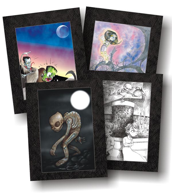 On FCBD (Saturday, May 4th, 2013), I will be debuting four new beautiful and spooky signed art prints, featuring my drawings and paintings in a variety of media. These will be the first in a series! These images have never been available for purchase before, nor have they appeared in any of my mini-comics. (Some of you may recognize two of these images from earlier blog posts.) The prints are, clockwise from top, Drac & Frank, Briar Fairy, The Fountain, and Moonshift. I will be posting larger pictures of each print in the coming days. Mark your calendar if you are interested in acquiring one, because Free Comic Book Day will be the day to do it! Special pricing for the set of four will also be available.