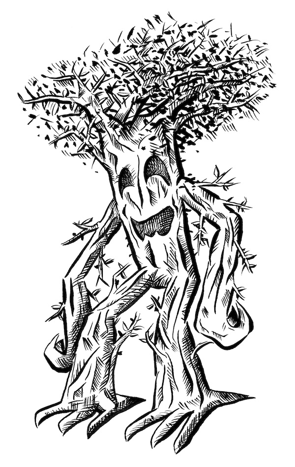 At long last, here is the fifth and final creature for the L. A. Mood Magic t-shirt! It is an ent/treant/treefolk/tree person/animate tree, depending on how worried you are about getting sued.