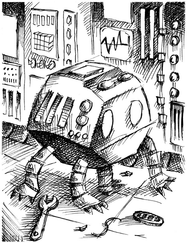 Turtlebot Mk IV (4-045) Felt-tip pen on paper, April 21, 2014.